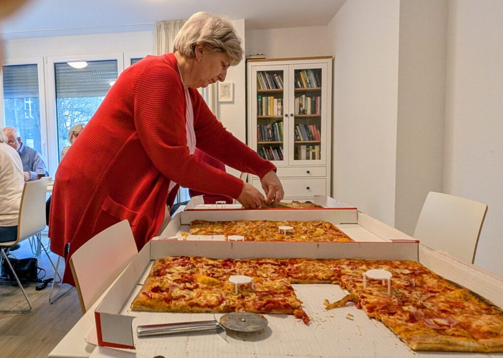 Nachdem mehrere Bleche Pizza mit vielfältigem Belag geliefert wurden, ließen wir und diese schmecken.
